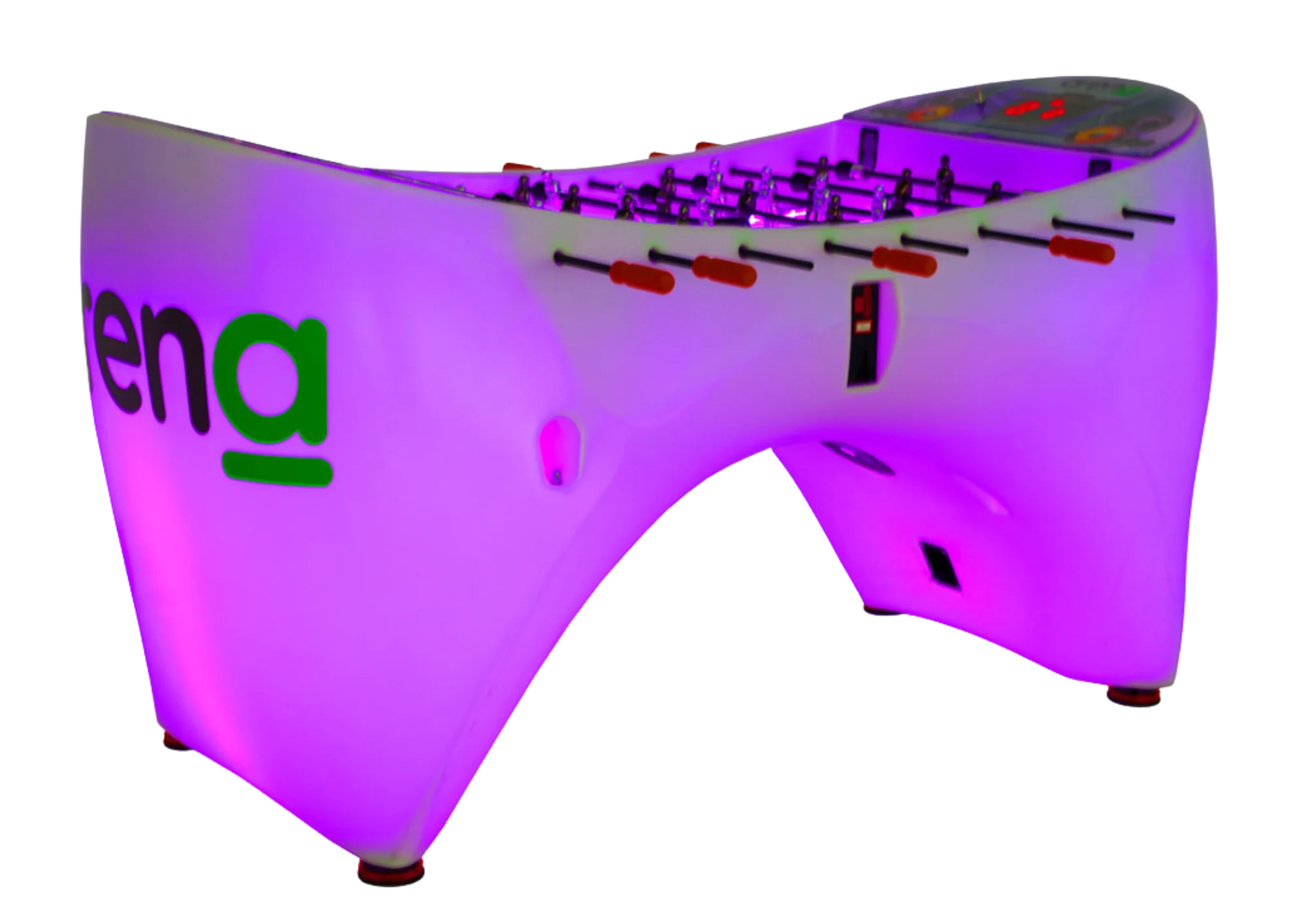 El futbolín electrónico ARENA diseñado por SAM está construido en un mueble sintético de una sola pieza y con cuatro niveladores para una perfecta colocación.