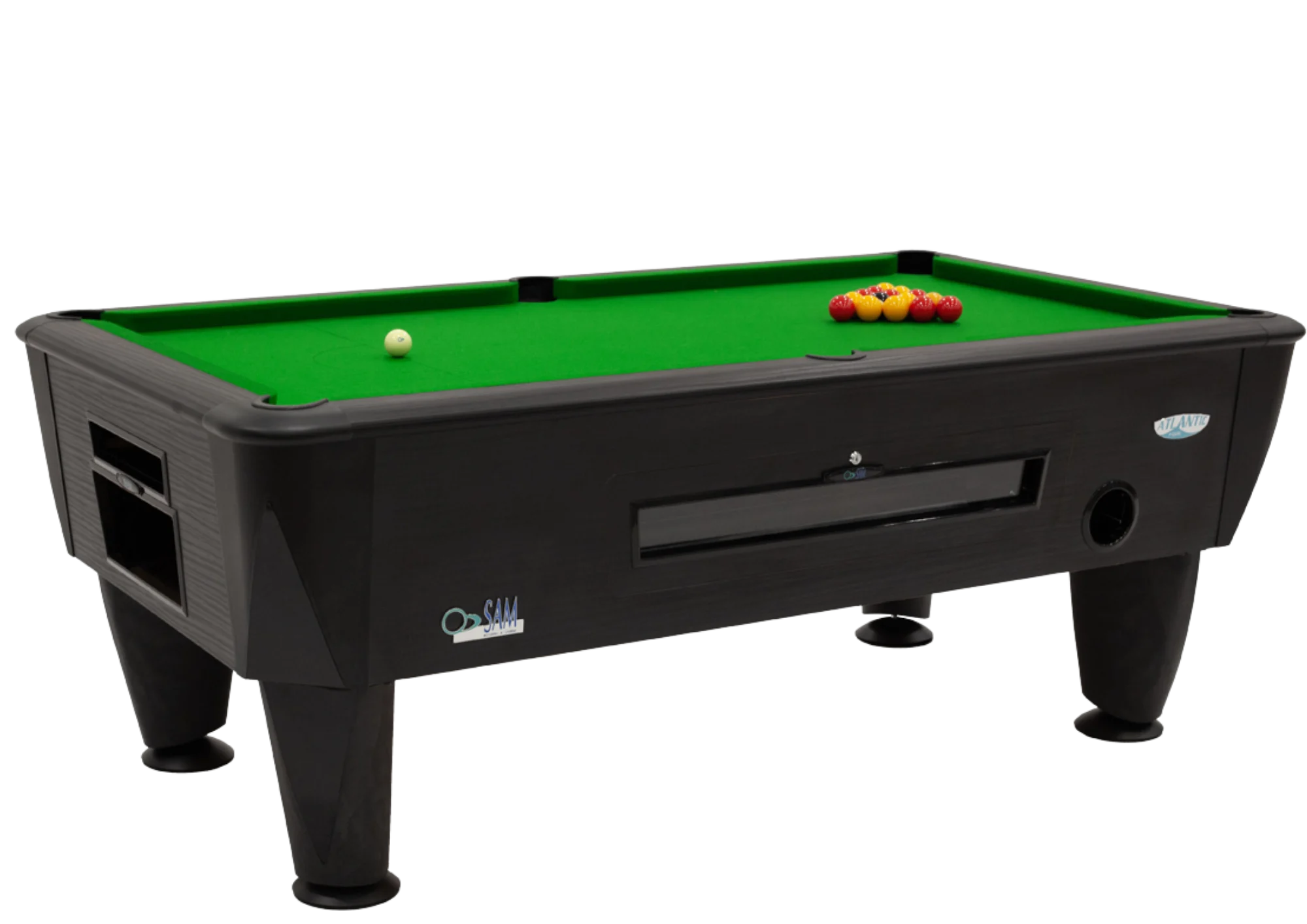 ATLANTIC garantiza el rendimiento económico con su innovador diseño. Es el más sofisticado, elegante y técnicamente avanzado pool inglés. Funciona con bola blanca de 48 mm.