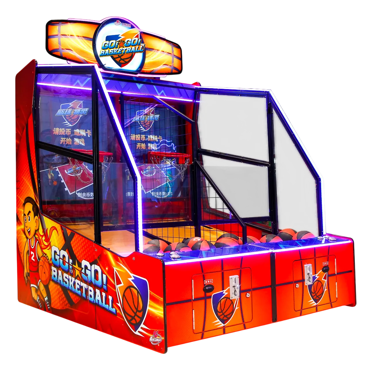 Go Go Basketball es la máquina de baloncesto compacta ideal para jugadores de todas las edades. Su mueble de tamaño reducido facilita el juego a los más jóvenes, mientras que su gran pantalla HD trasera garantiza una experiencia inmersiva. La emoción está asegurada gracias a su canasta móvil, que se aleja y desplaza durante la partida para aumentar el desafío en sus 3 niveles de dificultad.
